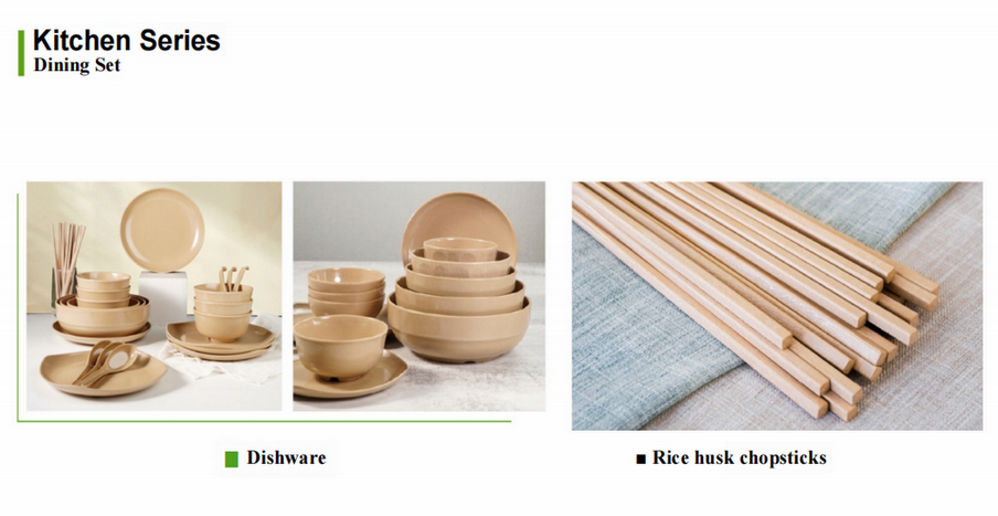 Through advanced recycling technology, waste is transformed into treasure. HOKIDO's rice husk tableware, certified